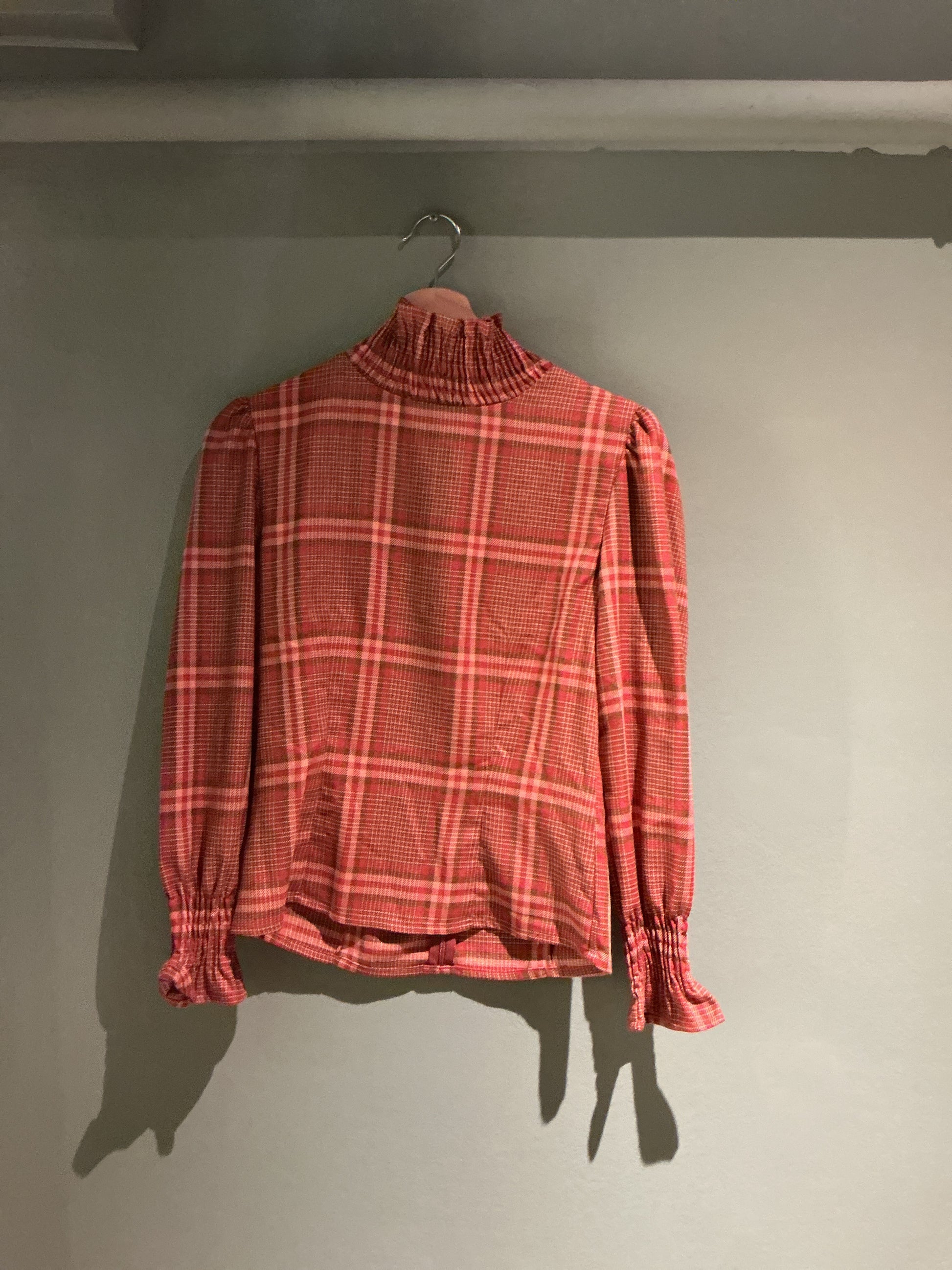 Camisa cuello subido cuadros rosas