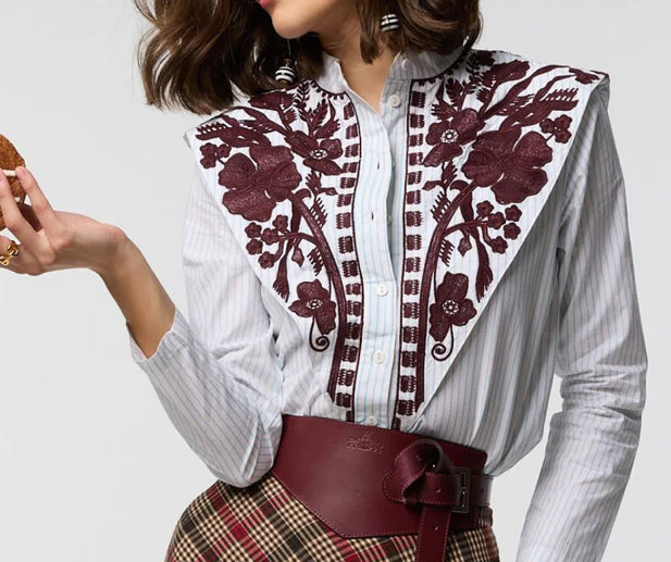 Camisa mani azul bordada