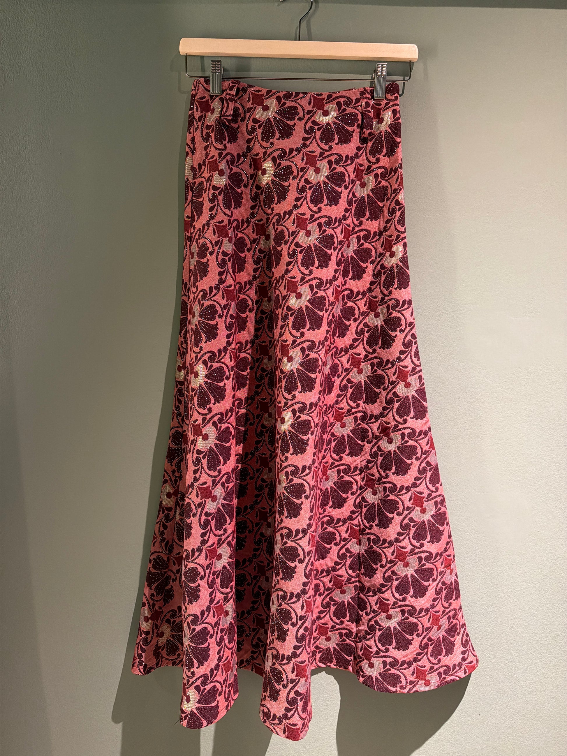 Falda rosa brillo
